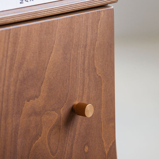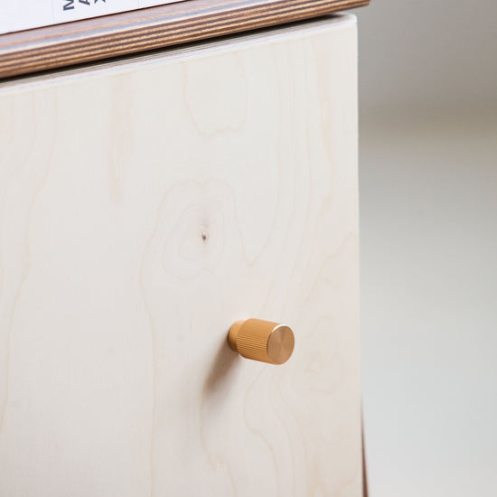 Używamy wysokiej jakości sklejki brzozowej, wyprodukowanej w Finlandii. Wszystkie nasze komponenty, takie jak prowadnice i zawiasy, są najwyższej jakości - używamy produktów marki Blum. Standardowe uchwyty, których używamy, są czarne, wykonane ze stali malowanej proszkowo, ale jeśli chcesz, abyśmy zamontowali inne uchwyty lub gałki, daj nam znać! Każdy mebel jest wykonywany na zamówienie, więc jesteśmy elastyczni w takich sprawach.