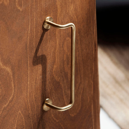Używamy wysokiej jakości sklejki brzozowej, wyprodukowanej w Finlandii. Wszystkie nasze komponenty, takie jak prowadnice i zawiasy, są najwyższej jakości - używamy produktów marki Blum. Standardowe uchwyty, których używamy, są czarne, wykonane ze stali malowanej proszkowo, ale jeśli chcesz, abyśmy zamontowali inne uchwyty lub gałki, daj nam znać! Każdy mebel jest wykonywany na zamówienie, więc jesteśmy elastyczni w takich sprawach.