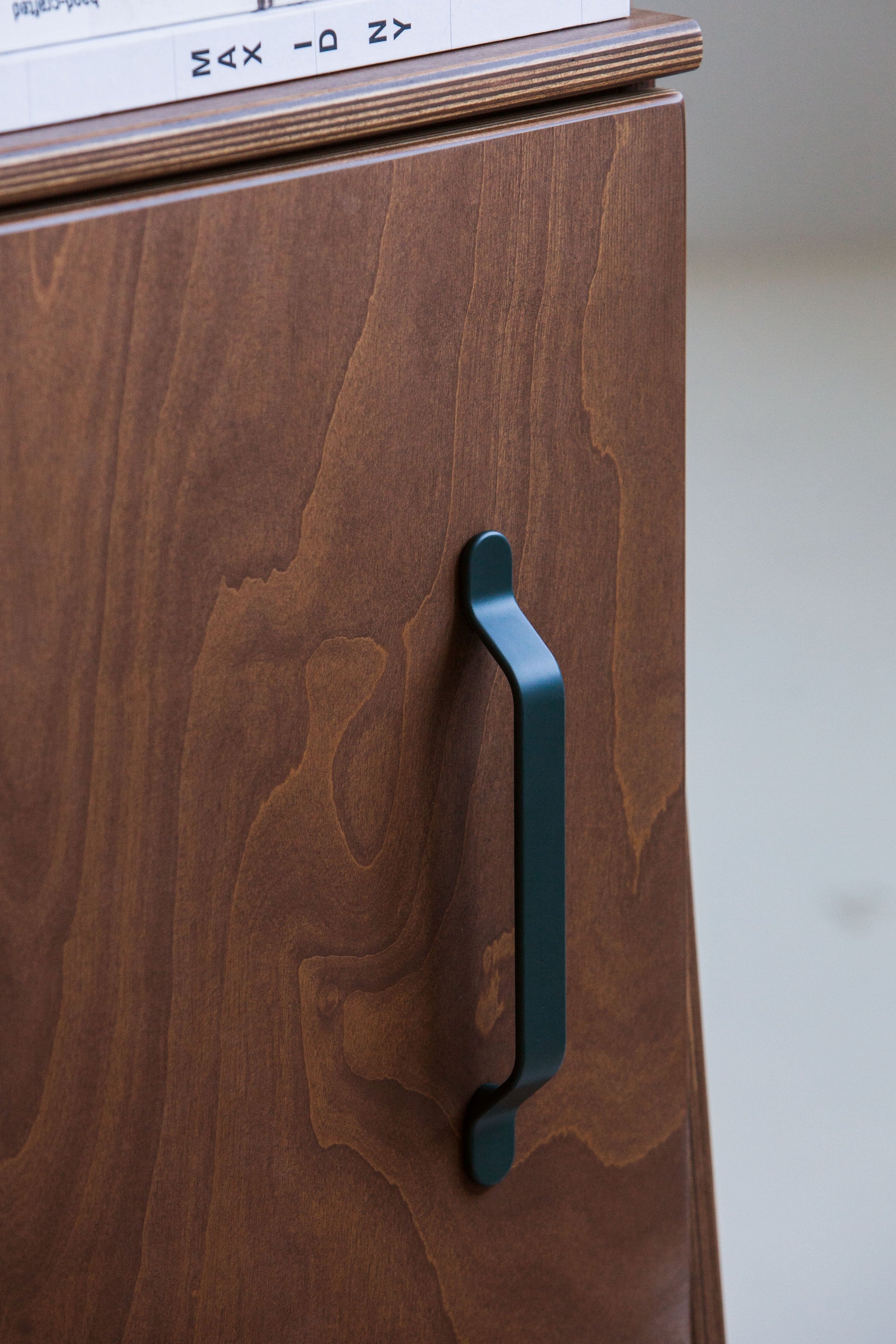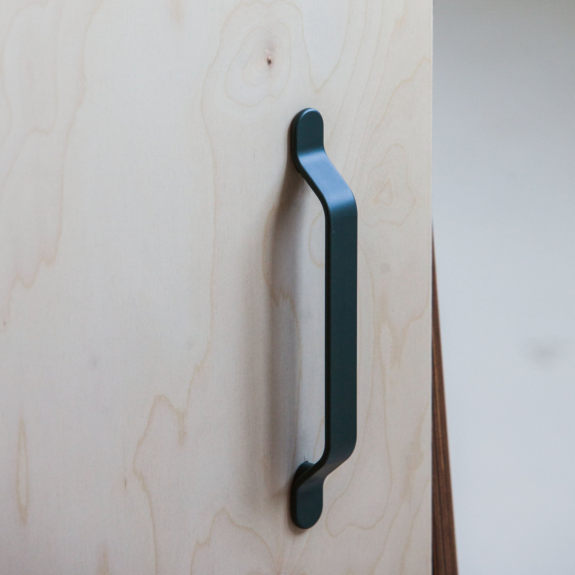 Używamy wysokiej jakości sklejki brzozowej, wyprodukowanej w Finlandii. Wszystkie nasze komponenty, takie jak prowadnice i zawiasy, są najwyższej jakości - używamy produktów marki Blum. Standardowe uchwyty, których używamy, są czarne, wykonane ze stali malowanej proszkowo, ale jeśli chcesz, abyśmy zamontowali inne uchwyty lub gałki, daj nam znać! Każdy mebel jest wykonywany na zamówienie, więc jesteśmy elastyczni w takich sprawach.