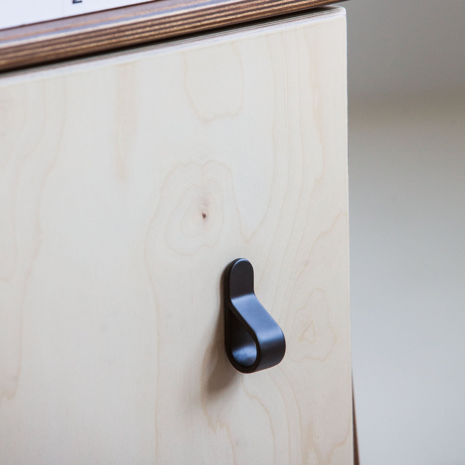 Używamy wysokiej jakości sklejki brzozowej, wyprodukowanej w Finlandii. Wszystkie nasze komponenty, takie jak prowadnice i zawiasy, są najwyższej jakości - używamy produktów marki Blum. Standardowe uchwyty, których używamy, są czarne, wykonane ze stali malowanej proszkowo, ale jeśli chcesz, abyśmy zamontowali inne uchwyty lub gałki, daj nam znać! Każdy mebel jest wykonywany na zamówienie, więc jesteśmy elastyczni w takich sprawach.