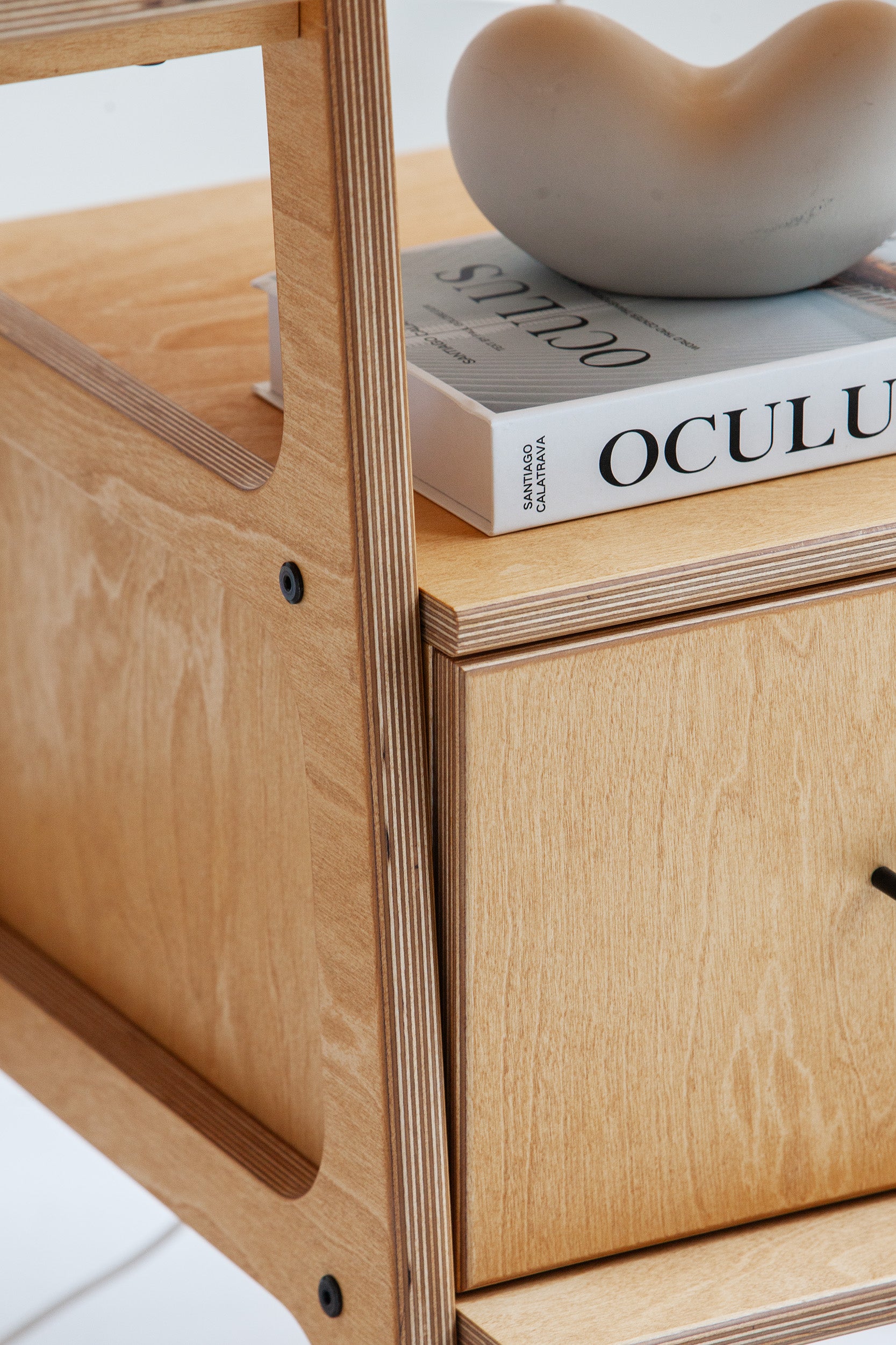 Używamy wysokiej jakości sklejki brzozowej, wyprodukowanej w Finlandii. Wszystkie nasze komponenty, takie jak prowadnice i zawiasy, są najwyższej jakości - używamy produktów marki Blum. Standardowe uchwyty, których używamy, są czarne, wykonane ze stali malowanej proszkowo, ale jeśli chcesz, abyśmy zamontowali inne uchwyty lub gałki, daj nam znać! Każdy mebel jest wykonywany na zamówienie, więc jesteśmy elastyczni w takich sprawach.