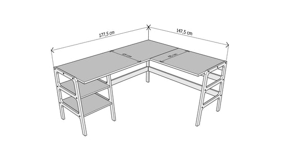 Biurko narożne z półkami – L-shape 175×65 i 147×65 cm
