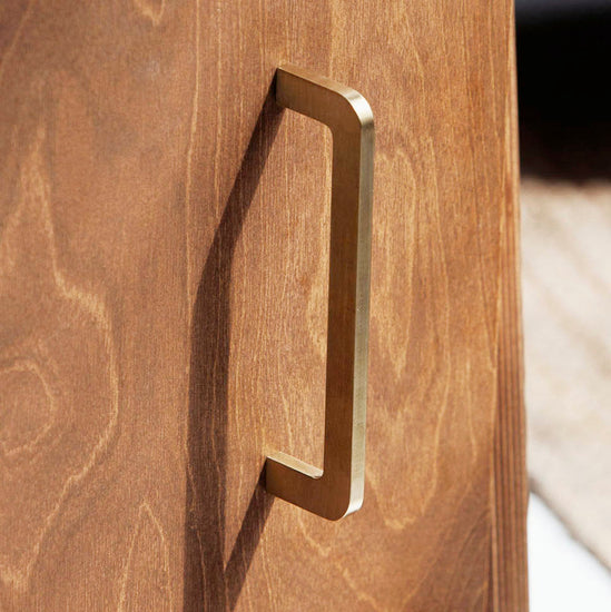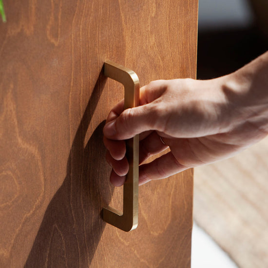 Używamy wysokiej jakości sklejki brzozowej, wyprodukowanej w Finlandii. Wszystkie nasze komponenty, takie jak prowadnice i zawiasy, są najwyższej jakości - używamy produktów marki Blum. Standardowe uchwyty, których używamy, są czarne, wykonane ze stali malowanej proszkowo, ale jeśli chcesz, abyśmy zamontowali inne uchwyty lub gałki, daj nam znać! Każdy mebel jest wykonywany na zamówienie, więc jesteśmy elastyczni w takich sprawach.