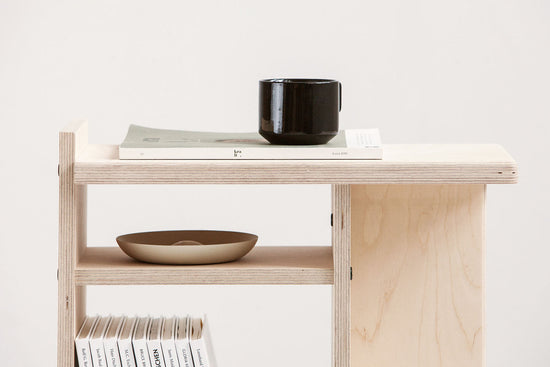 Minimalistyczny i uspokajający, stolik nocny Nokori wprowadza do wnętrza porządek i lekkość. Jego czysta, geometryczna forma tworzy wizualną równowagę, nie przytłaczając przestrzeni — staje się cichym tłem dla codziennego życia.